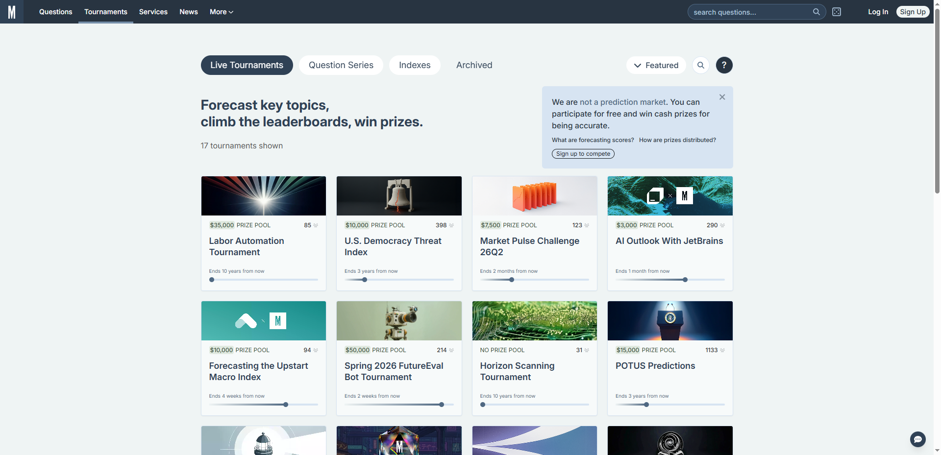 Why Choose This Source Code? Production Ready: Clean, modular code that is ready for immediate deployment. Highly Scalable: Optimized to handle thousands of simultaneous forecasters and complex data visualizations. Monetization Ready: Easily integrate subscription models, sponsored forecast tournaments, or premium data API access.